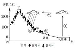 【小题3】甲地位于山麓,乙地位于山顶,甲地和乙地植被类型不同,体现了山地的垂直分异规律,C正确。