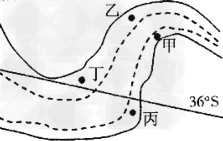 【小题2】本题考查图示为南半球洋流的分布。图中a表示秘鲁寒流,b表示南赤道暖流,c表示东澳大利亚暖流,d表示西风漂流,e表示西澳大利亚寒流。寒流对沿岸沙漠的形成有重要作用,西风漂流流经地无陆地,故选D。