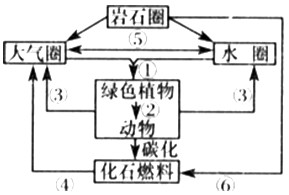 1、单选题  工业革命以来,人类大量使用石油、煤炭等化石燃料,从而加剧全球变暖,带来气候多变、灾害丛生等严重后果。为此全社会在倡导发展低碳经济和低碳生活。右图示意碳物质在地球圈层中的循环过程,读下图,回答1~3题。