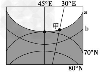 时刻北半球局部光照图(阴影部分为黑夜),a、b为晨昏线,且晨昏线由a向b方向移