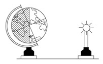 3、单选题  将一盏灯放在桌子上代表太阳,在电灯旁放置一个地球仪代表地球,拨动地球仪模拟地球运动。读图后回答: