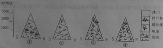 2、造成该植被在四地海拔高度分布不同的主要因素是