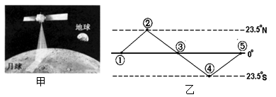 5、单选题  2010年10月1日18时59分57秒,搭载着“嫦娥二号”卫星的长征三号丙运载火箭在西昌卫星发射中心点火,19时整成功升空。下图为飞控大厅大屏幕上显示嫦娥二号打开发动机开始制动(图甲)和太阳直射点周年变化示意图(图乙),回答下列各题。