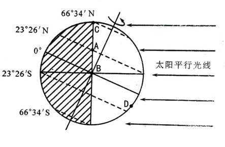 (4)B地处于五带中的__________带,此时我国正值_________季,西安昼夜长短状况是________。