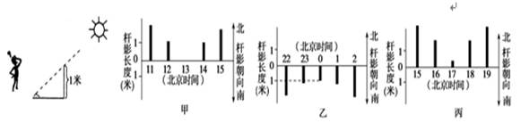 小题2:当乙地测得该日杆影长最短时,丙地所在时区的区时是