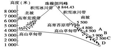 2、综合题 读喜马拉雅山南坡和北坡自然带分布示意图,回答下列问题。(10分)