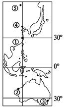 5、综合题 下图是“世界部分地区示意图”。读图完成下列各题。