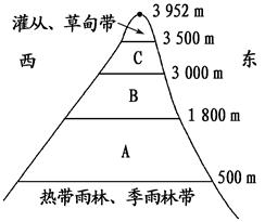 4、单选题 在理论上,垂直自然带与相应水平自然带有下图所示对应关系。读图完成1—2题。
