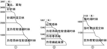 2、单选题  读“我国三个山地的垂直地域分异示意图”,回答1-2题。