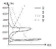 5、单选题  图是“某山地海拔高度与植物生长量、年平均气温、年降水量、年太阳辐射量的关系图”,横坐标表示植物生长量、年平均气温、年降水量和年太阳辐射量。读图完成1—2题。