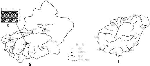 材料二:图a:新疆南部(南疆)地区主要城市及水系分布图