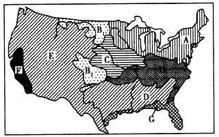 (3)美国的乳畜业主要分布在图中字母____处,因为该处具备发展乳畜业的两个主要区位条件,一是__