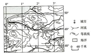(1)影响农业生产的自然条件主要有:地形、气候(光、热、降水、昼夜温差等)、土壤、水源等,从区域等高线图和相关气候资料可以看出,该区域海拔多在200米以下,因此地形以平原为主,河流众多,气温最冷月均温大于0℃(3.5℃),最热月均温小于20℃,降水较多且各月较均匀,日照时数少,因此可判断该区域气候类型为温带海洋性气候,其发展农业的限制性因素是热量不足,光照不足。注意回答时要从有利影响和不利影响两方面进行。
