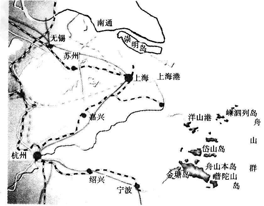 舟山,我国唯一以群岛建制的地级市,在陆域经济年代,它只是以拥有“海天佛国”普陀山和舟山渔场而闻名。2011年7月国务院批准设立浙江舟山群岛新区,成为我国继上海浦东新区、天津滨海新区和重庆两江新区后又一个国家级新区,也是首个以海洋经济为主题的国家级新区。结合下图,回答问题。