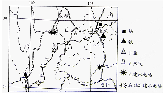 (2)与三峡工程(水电站)比较,金沙江水电基地建设的有利条件有哪些?(6分)
