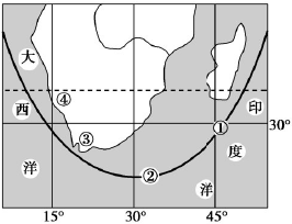 4、单选题 一艘轮船沿图中的航线从印度洋驶向大西洋,据图判断,以下叙述正确的是