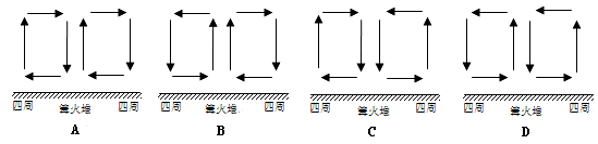 【小题2】下图中能反映篝火堆及其周边烟气运动情况的是
