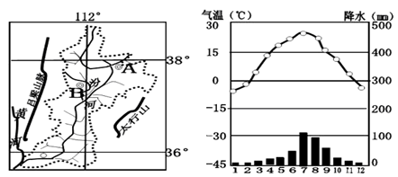材料一:山西汾河流域图(左图)和A市的气候资料图(右图)。