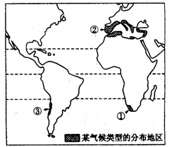 2、单选题 读世界某气候类型局部地区分布示意图,回答下面各小题。