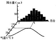(2)甲处气候特征与图所示a、b、c三气候类型中的 比较吻合。该气候的成因主要是 和 。(3分)
