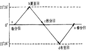 4、综合题  读“太阳直射点周年移动示意图”,回答下列问题:(10分)