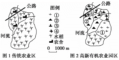 小题2:在图2中的①、②、③、④处分别布局饲料作物、大棚蔬菜、有机茶、花卉,该地农业结构发生变化的原因不可能是