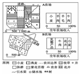 5、单选题 下图是农场A和农场B的有关资料,仔细阅读,分析回答下列各题。