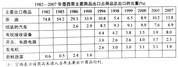 材料一:1994年以前,墨西哥经济结构单一,主要依赖石油出口。