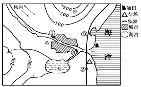 (2)若该市欲投资建设一化工厂应布局在 ①、②、③、④四地的___________地,分析该化工厂的优势