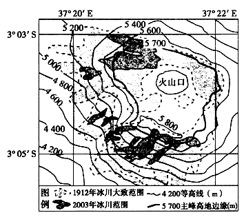 5、单选题  下图近年来乞力马扎罗山山顶“雪冠”逐渐缩小,有环境专家指出这独有的“赤道雪山”奇观可能会在10年内彻底消失。结合下图,回答以下问题。