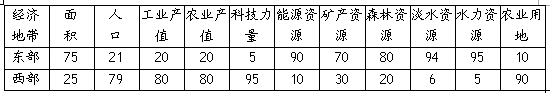 材料三 下表为俄罗斯两大经济地带的基本经济指标(%)
