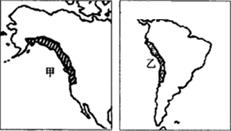 4、单选题 甲、乙两种气候类型分布示意图。完成1~2题。