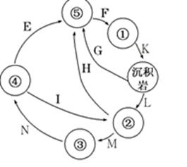 2.图中数码和字母分别表示:①是沉积物②变质岩③岩浆④岩浆岩⑤风化物,E-风化作用,F-沉积作用,G-风化作用,N-岩浆活动,M-重熔再生作用,L-变质作用,I-变质作用,H-风化作用。图中表示翡翠玉石及其形成过程②、I。选A正确。