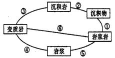 1、单选题 读地壳物质循环示意图(下图),回答1—2题。