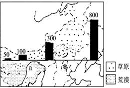 【小题1】由图可知降水量由东往西逐渐减少,是由于跨海远近不同造成的。西部远离海洋,受海洋影响小,降水越来越少。选B正确。