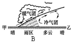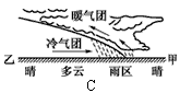点评:本题难度较小,解答本题的关键是明确冷锋、暖锋的判别方法。