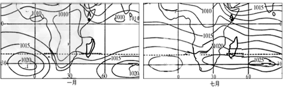 材料三:图3为非洲部分地区一月、七月海平面等压线分布图