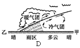 2、下图中沿甲乙线所作的天气系统垂直剖面示意图正确的是