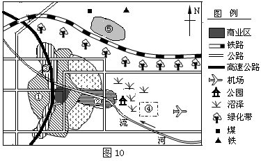 2、单选题 读某城市空间结构图(图10),回答25~26题。
