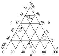 小题1:如果a、b、c分别表示农业生产社会经济投入中的劳动力投入、生产资料投入、科技投入,下列各点中最能代表亚洲水稻种植业的是