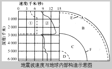 (4)E界面以下地震波传播速度的变化特点是___________________________________,F界面以下地震