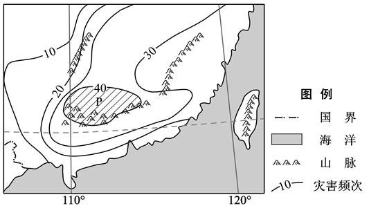 (1)指出冷冻灾害对农业生产的影响,并分析图中P区域冷冻灾害高发的原因。(9分)