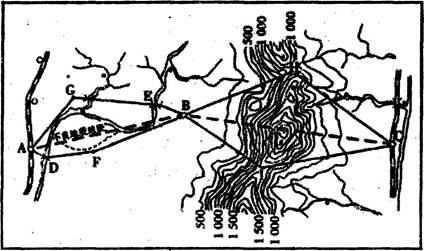 3、单选题 铁路定线是在地形图或地面上选定线路的方向,确定线路的空间位置,并布置各种建筑物,是铁路勘测设计中决定全局的重要工作。下图铁路定线是线路起止点和必须经过的城市A、B、C。读图,完成下列各题。