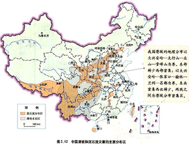 1、综合题 读“中国滑坡和泥石流灾害的主要分布区图”,回答下列问题。
