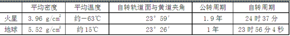 2、单选题 受俄罗斯“福布斯-土壤”火星探测器推迟发射的影响,原计划于2009年10月和该探测器结伴奔火星的我国首个火星探测器“萤火一号”也不得不将发射日期延后。火星拥有和地球最接近的环境,可能存在液态水甚至生命。也正因此,火星成为了人类太空探索的重要目标。分析表格资料,回答问题。