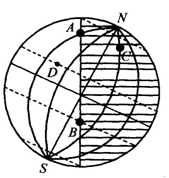 (2)A、B、C三点位于   (东、西)半球,D点位于   (南、北)半球。