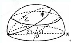 3、单选题  下图为北半球甲乙两地某日“太阳视运动路线图”,圆O为地平圈,箭头为太阳视运动方向,<1=<2=22º。回答下列问题。