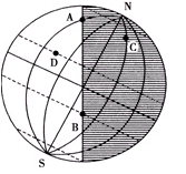 (6)AB线正处于________(晨、昏)线上。A点的昼长为________小时,A点的日出时间是________时。
