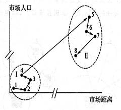 4、单选题 下图为某企业空间扩展的过程,图中1-8为扩展的顺序,其扩展过程可分为Ⅰ、Ⅱ两个阶段。完成下列各题。