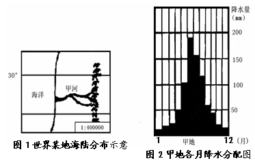 1.图1中另一条纬线的度数与图中30°纬线相差10个纬度,根据两图中信息判断甲地位置和气候类型是2.下列叙述不正确的是